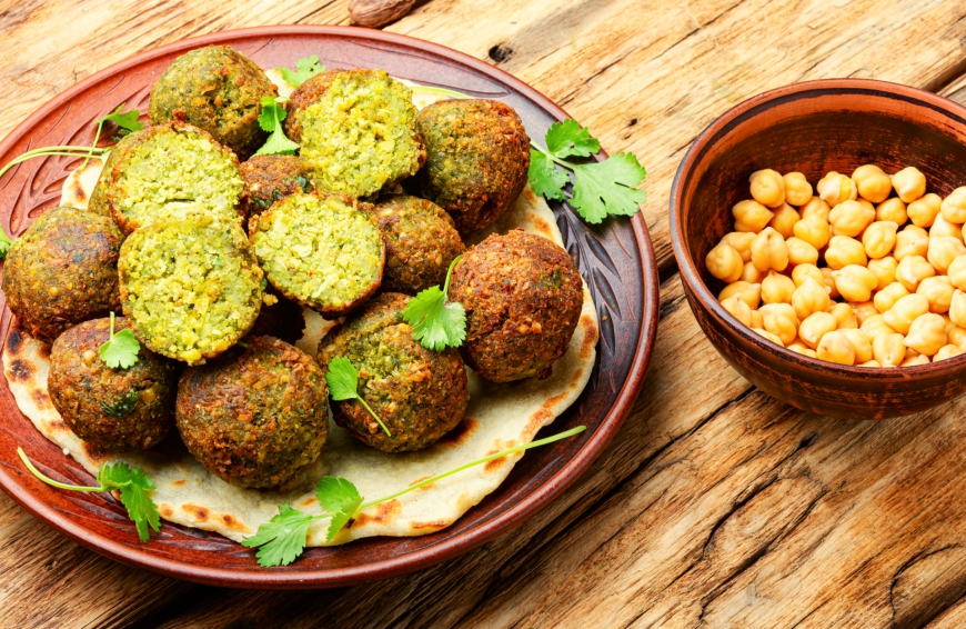 solata fattoush + koščki orientalsko začinjenega piščanca na žaru